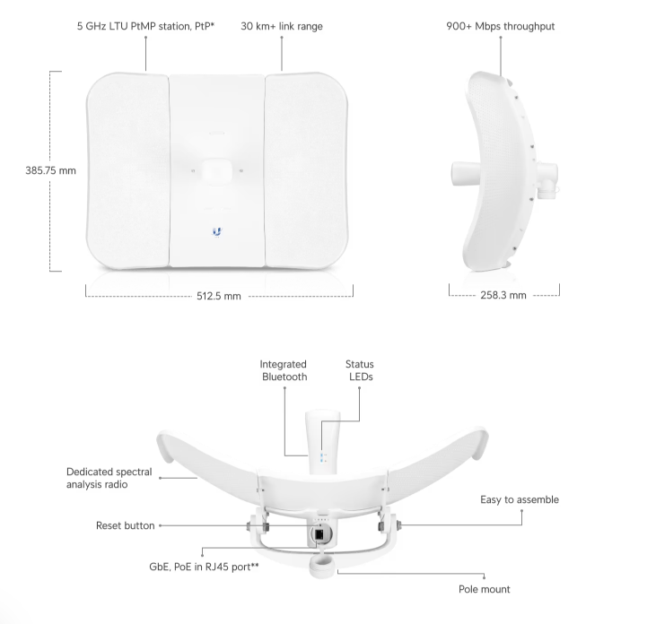 Ubiquiti Unifi U6-Long range WIFI 6 access point, standard WIFI 802.11a/b/g , WiFi 4/WiFi 5/WiFi 6 , interfata: 1x GbE RJ45, Bluetooth, alimentare: 802.3at PoE+, passive PoE (48V), consum maxim 16.5W,4×4 MIMO, 2.4GHZ-600 Mbps, 5GHZ- 2400 Mbps.