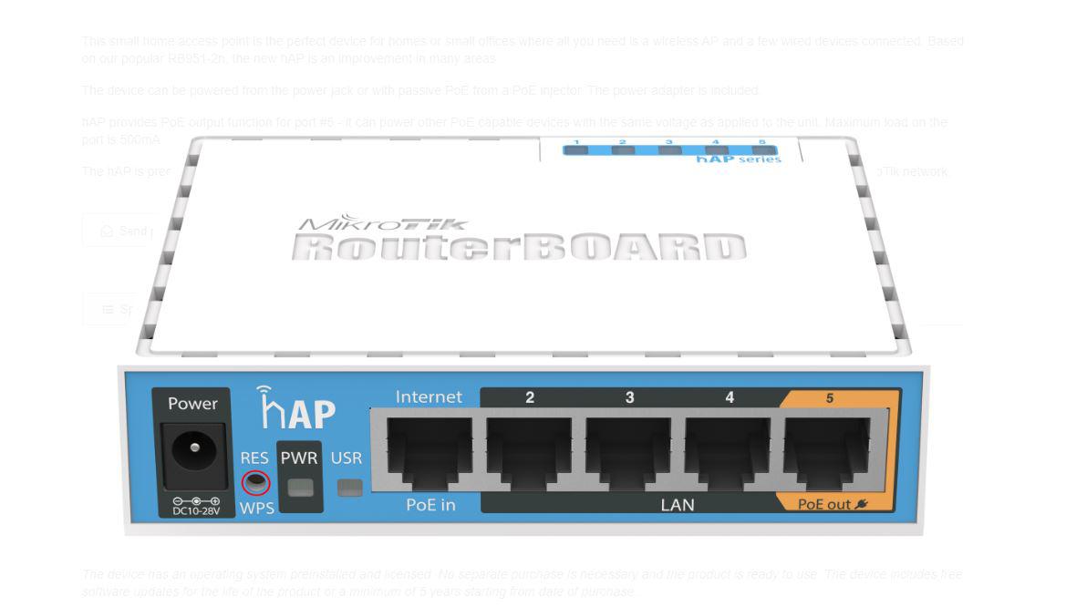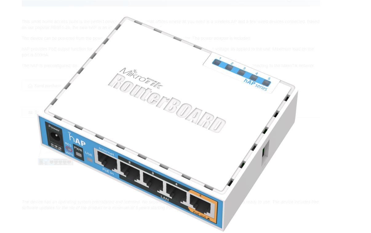 WIRELESS ACCESS POINT MIKROTIK RB951UI-2ND, hAP, 5xLAN Fast Ethernet ,PASSIVE POE IN/OUT