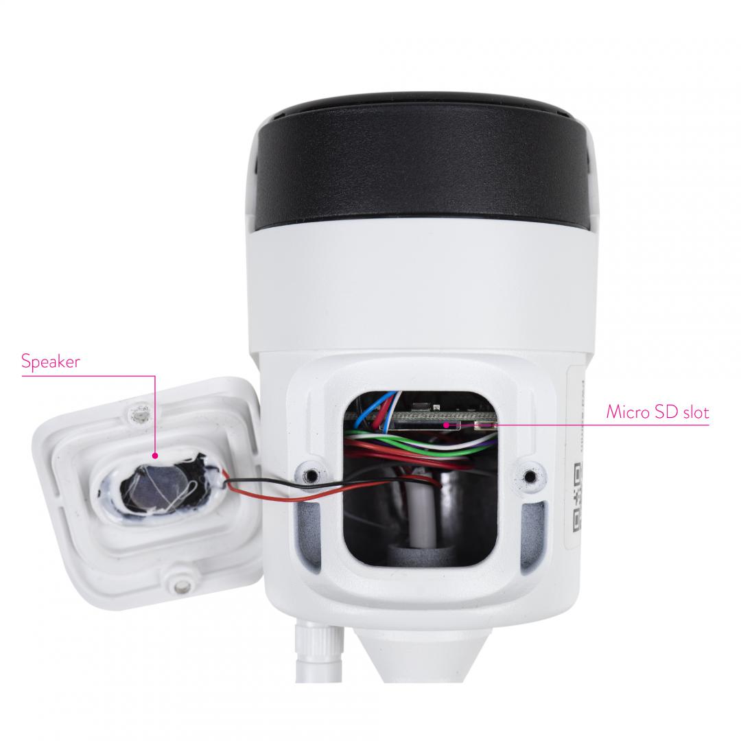 Camera supraveghere video PNI House IP52LR 2MP 1080P wireless cu IP de exterior si interior si slot microSD, mod noapte, Senzor imagine: CMOS 1/2.8″, lentila: 3.6mm, Unghi de vizualizare: 80°, Compresie imagine: H.264, 30 FPS, Microfon integrat, Difuzor integrat, wireless: 2.4 Ghz 802.11b/g/n, 10/100 Mbps RJ-45, IR 20m.