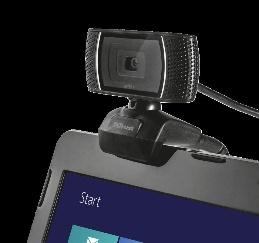 Camera WEB Trust Trino HD Video Webcam Specifications General Plug & play yes Driver needed no Height of main product (in mm) 81 mm Width of main product (in mm) 70 mm Depth of main product (in mm) 62 mm Total weight 88 g Mounting type flexible stand Connectivity Cable length main cable 143 cm USB version 2.0 Audio Microphone built-in yes Features Software yes Imaging Snapshot button yes Viewing angle 52 degrees Automatic white balance yes Face tracking yes Focus type fixed focus Zoom type digital Motion detection no Privacy mode no Max Framerate 30 fps Still image resolution 3200 x 2400 (software) Video resolution 1280 x 720 (software) Lighting Lights no https://www.trust.com/en/product/18679-trino-hd-video-webcam