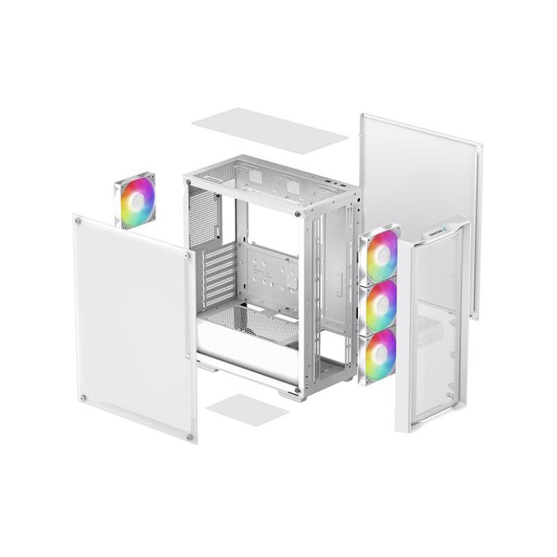 Carcasa DEEPCOOL CC560 MESH V2 Mid Tower ALB, Tempered Glass, Sloturi Expansiune 7, Drive Bays: 2×3.5″ 2+1×2.5″, Ventilatoare Suportate: 8 (spate: 1x120mm, fata: 3x120mm sau 3x140mm, sus: 2x120mm sau 2x140mm, invaluit in sursa: 2x120mm), Ventilatoare Incluse: 4 (spate: 1x120mm, fata: 3x120mm), Format Placa De Baza Suportat: Mini-ITX, Micro-ATX, ATX, Lungime Maxima Placa Video: 370mm, Inaltime Maxima Cooler Procesor: 165mm