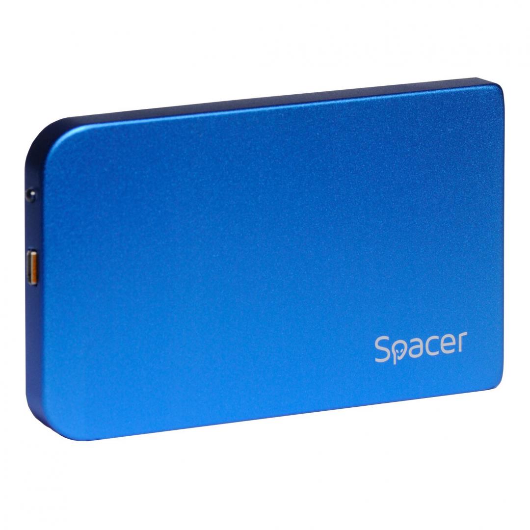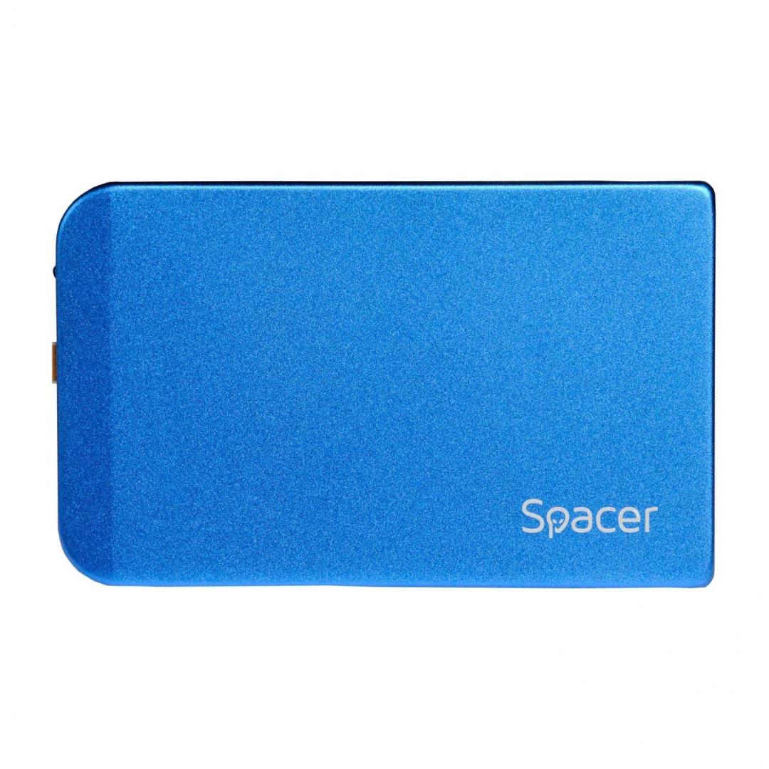 RACK extern SPACER, pt HDD/SSD, 2.5 inch, SATA, interfata PC USB 3.0, Husa piele sintetitca, aluminiu, albastru
