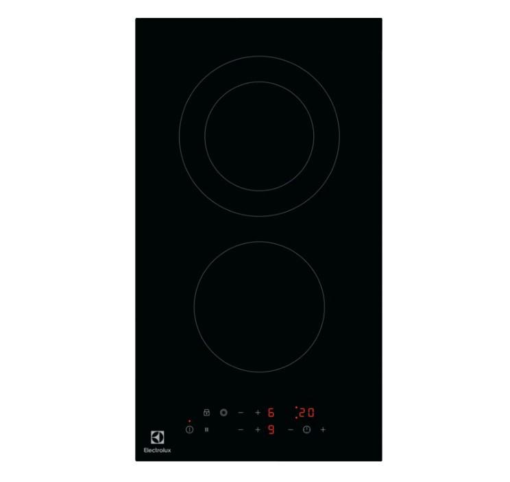 Plita incorporabila Electrolux LHR3233CK, Electrica, 2 zone de gatit, Control touch, Blocare acces copii, 29 cm, Sticla ceramica neagra