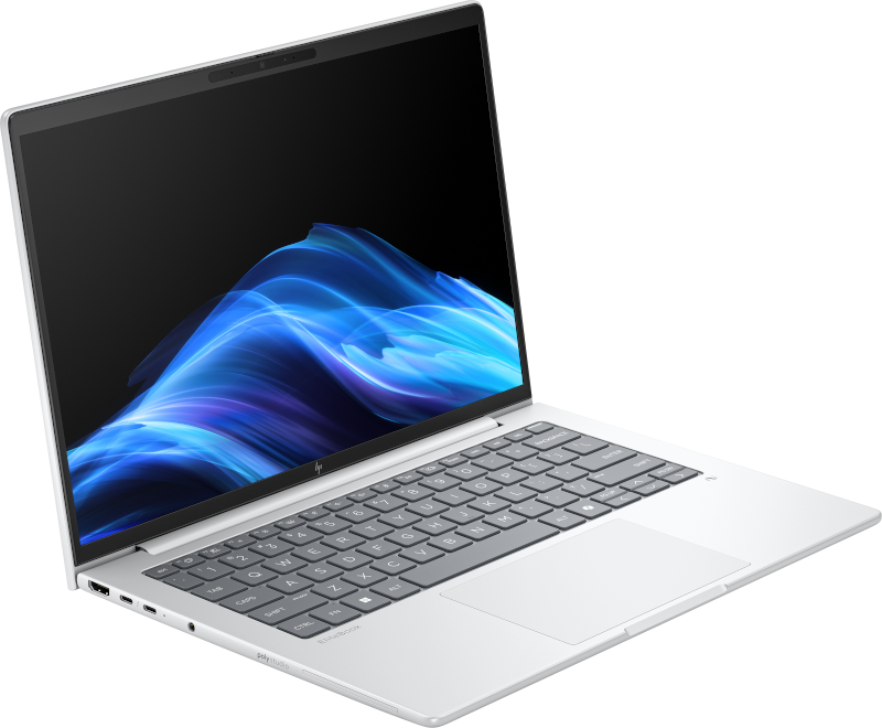 Laptop HP EliteBook 8 G1i, 14.0 inch WUXGA (1920×1200) LED UWVA Anti- Glare IR ISP+ 300 nits 60 Hz, Intel Core Ultra 7 255U 12-core (1.7GHz up to 5.2GHz, 12MB, 12 TOPS), video integrat Intel Graphics, RAM 32GB DDR5 5600Mhz (1x32GB), SSD 1TB PCIe NVMe, no ODD, Active SmartCard, Audio by Poly Studio, două difuzoare stereo cu amplificatoare discrete, Webcam HD 5MP IR, WLAN Intel BE201 Wi-Fi 7, Bluetooth 5.4, Fingerprint Sensor, WNC XRAV-1 NFC, Porturi: 2x Thunderbolt 4 Type-C 40Gb/s (Power Delivery, DisplayPort 2.1)/1x USB Type-C 10Gb/s (Power Delivery, DisplayPort 1.4)/ 1x USB Type-A 5Gb/s(powered)/ 1x HDMI 2.1/ 1x headphone/microphone, adaptor 65W USB-C, Baterie 3 celule 62Whr MC Long Life Fast Charge, Tastatura HP Premium iluminata rezistenta la stropire, Glacier Silver, Greutate 1.39 kg, Dimensiuni 31.56 x 22.2 x 1.17 cm, Windows 11 Pro 64bit, 3yw Offsite