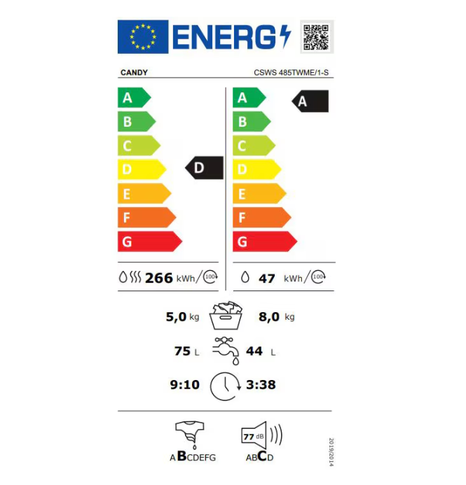 Masina de Spalat cu Uscator Candy CSWS 485TWME/1-S S Inv., 8+5kg, 1400, DA, BPM, MPS, BIG TOUCH, NFC, Steam, WHITE+white