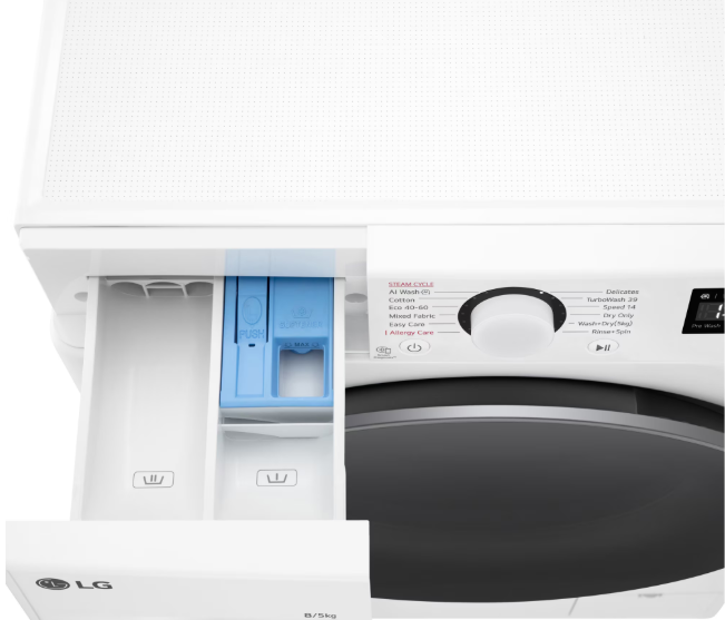 Masina de spalat rufe cu uscator LG F2DR508S1W, 8 kg Spalare, 5 kg Uscare, 1200 rpm, Motor Direct Drive, Clasa B, TurboWash, Alb