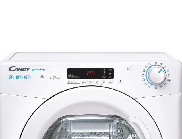 Uscator de rufe Candy Smart Pro CSOE H8A2DE-S, Pompa de caldura, 8 kg, Clasa A++, WiFi, Easy case, Senzor uscare, Antisifonare, Alb