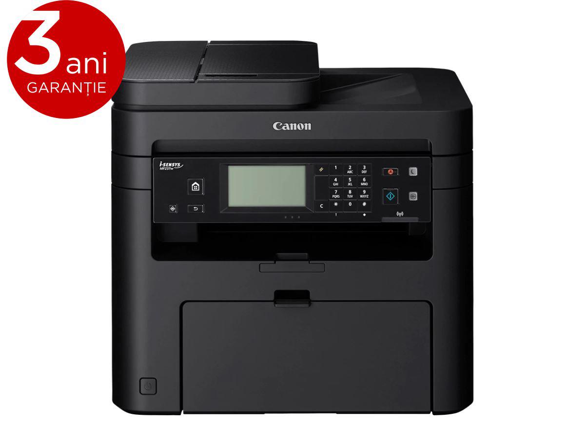 Multifunctional laser mono Canon Bundle MF237W + 2 X CRG737, dimensiuneA4 (Printare,Copiere, Scanare, Fax), viteza 23ppm, rezolutie max600x600dpi, memorie256MB RAM, alimentare hartie 250 coli, limbaj deprintareUFRII-LT,copiere 23 ppm, pana la 999 copii, marire-micsorare 25-400%,scanarecolor rezolutie optica 600X600 dpi, enhanced 9600 X 9600dpi, ADF35coli, scanare pe PC, scanare in cloud, fax 33.6 Kbps, memoriefaxpanala 256 pagini, display LCD alb-negru 6 linii, volumdeprintarerecomandat 500-2000 pagini/luna, ciclu de lucru max15.000pagini/luna,interfata: USB 2.0 Hi-Speed, Ethernet, Wireless802.11b/g/n,WirelessDirect Connection, Google Cloud Print, Apple AirPrint,consumabil:CRG737, Extindere garantie la 3 ani gratuit, prin inregistrare. Detalii la https://www.canon.ro/offers/offic ewarrantypromotion/