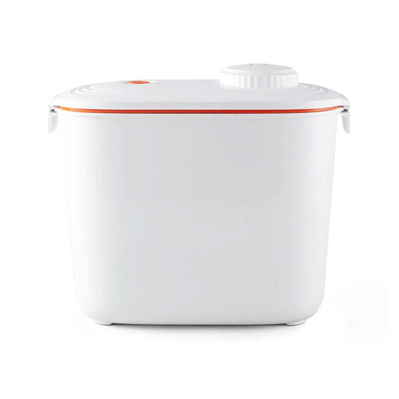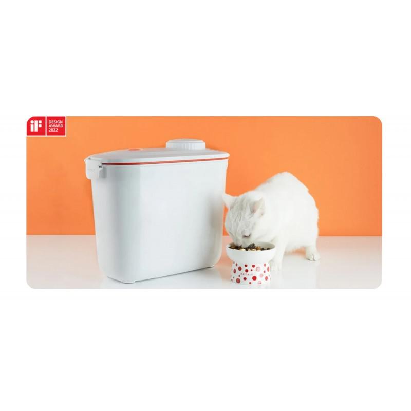 Dispozitivul este fabricat din materiale fara BPA, iar capacitatea de 10,4 L este suficient de mare pentru a pastra aproximativ 4,5 kg alimente.