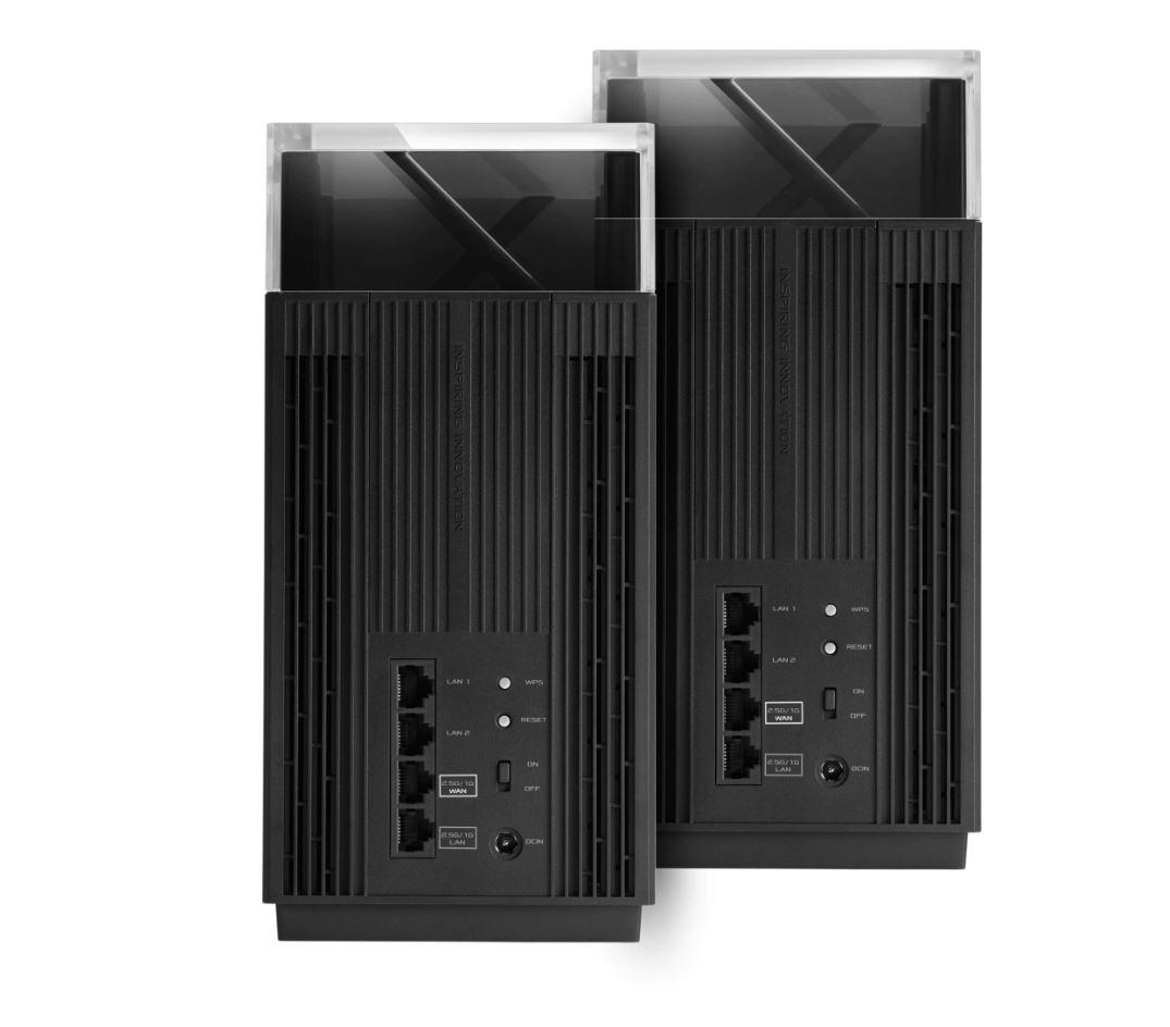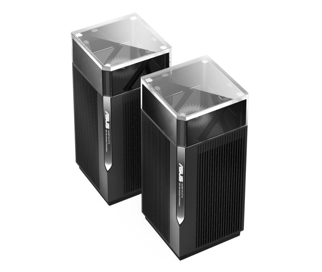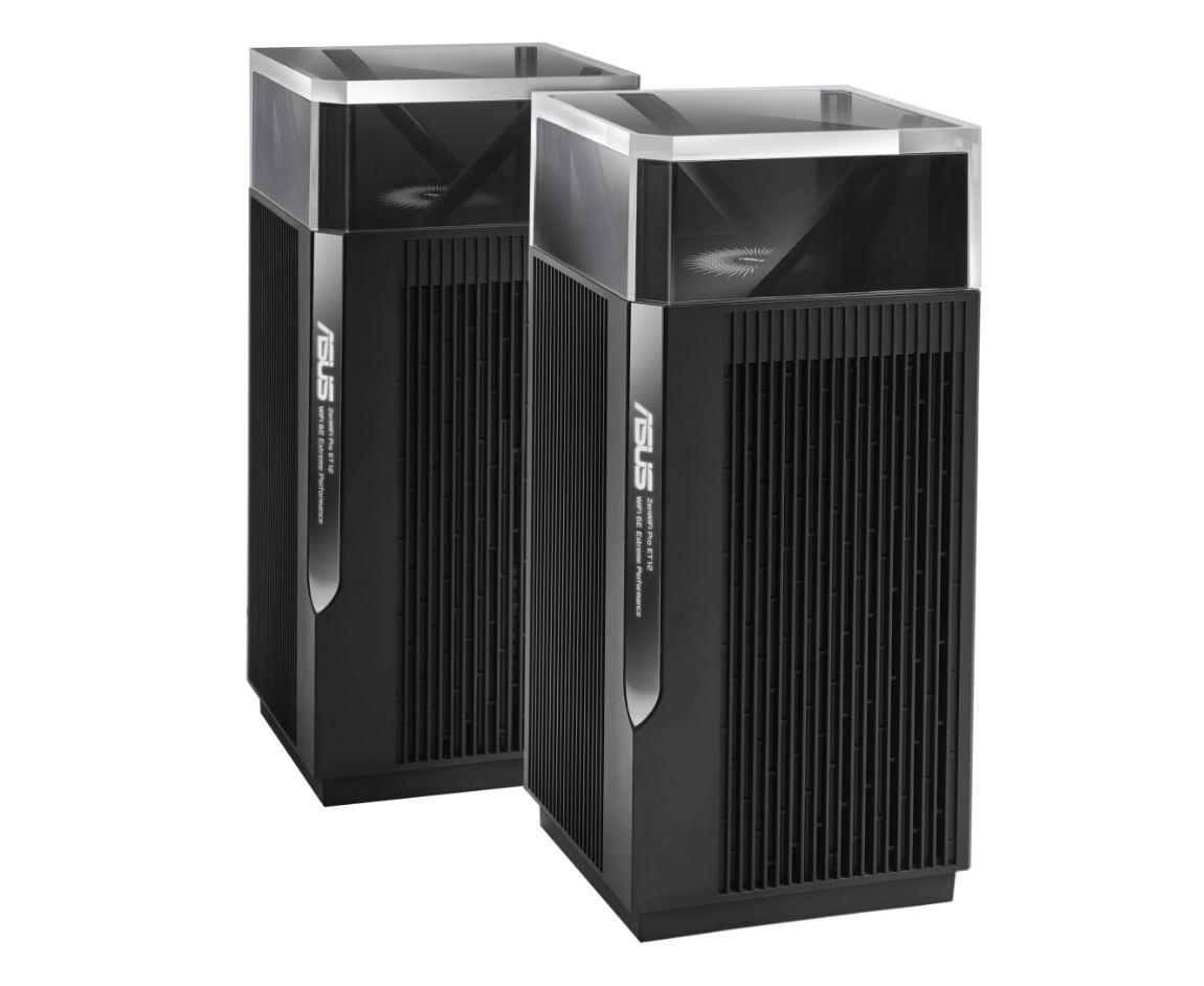 Asus Tri band home Mesh ZENwifi PRO system, ET12(2-PK) pack, AXE11000 1148+4804+4804Mbps,10 X antene interne, Tri-Band: 2.4GHz 4×4, 5GHz 4×4, 6GHz 4×4, Procesor: 2.0 GHz quad-core 64bits, Memorie: 256 MB Flash, 1GB RAM, interfata: RJ45 for 2.5G BaseT for WAN x 1, RJ45 for 2.5G BaseT for LAN x 1, RJ45 for Gigabits BaseT for LAN x 2, WPA2-PSK, WPA-PSK, greutate 1.5 kg.