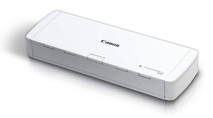 Canon imageFORMULA R10, Sheetfed Scanner A4, Senzor CMOS CIS cu 1 linie, Sursa de lumina LED RGB, Rezolutie optica 600 dpi, Viteza de scanare: Alb-negru: 12 ppm Color:9 ppm, Capacitate alimentator 20 coli, Software de scanare integrat CaptureOnTouch Lite (Windows 8.1 / 10 – 32 biţi/64 biţi), interfata: USB 2.0, Scanare: Faţă/Verso/Duplex, greutate 0.9 kg, dimensiuni: 285 (l) x 95 (A) x 40 (H) mm, consum energie 2.5 W.