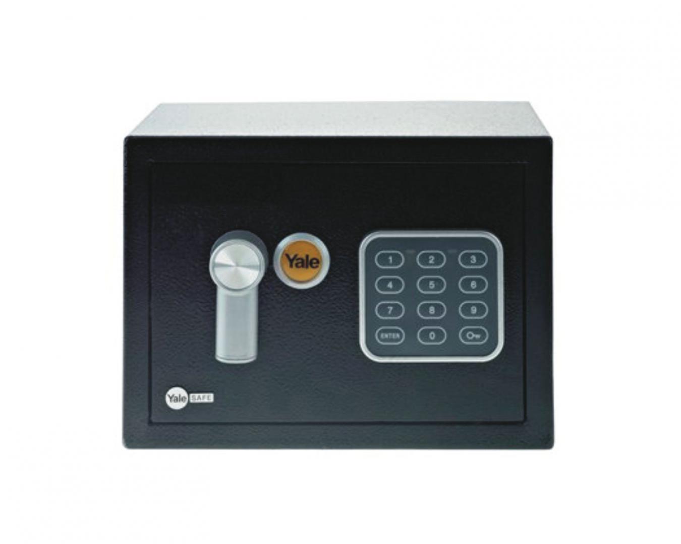 Seif Yale standard rezidential mini YSV/170; Se livreaza cu 2 chei; se blocheaza la introducerea consecutiva a 3 coduri personale gresite ; Usor de actionat cu cod personal; Mai mult de 100 000 de combinatii culoare negru