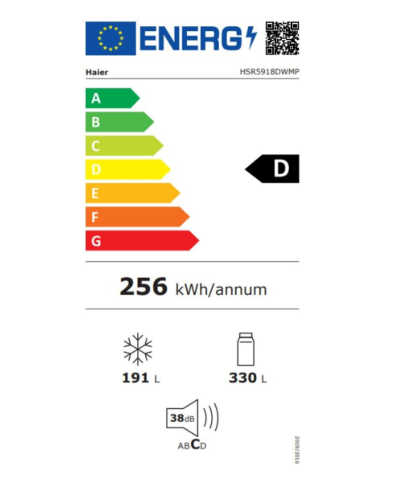 Side by side Haier HSR5918DWMP, 521 litri, Total No Frost, Multi air flow, Clasa D, SuperCooling, SuperFreezing, Holidays, dispenser apa, H 177 cm, Inox