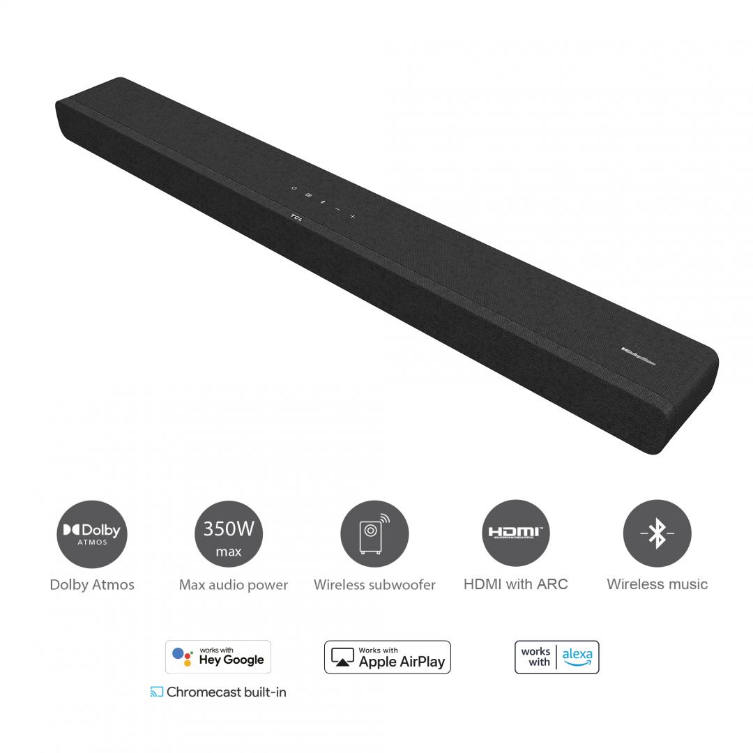 Soundbar TCL TS8132, 3.1.2, 350W, Bluetooth, Dolby Atmos, SubwooferWireless, Negru