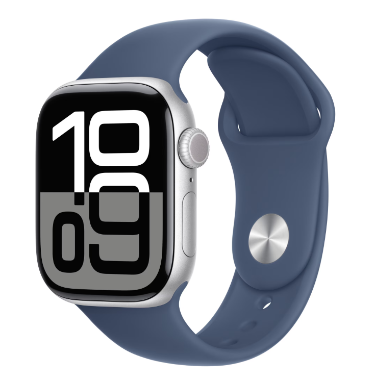 Apple Watch Series 10 GPS + Cellular 42mm Silver Aluminium Case with Denim Sport Band – S/M