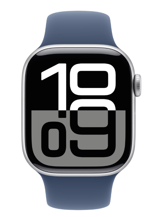 Apple Watch Series 10 GPS + Cellular 42mm Silver Aluminium Case with Denim Sport Band – M/L