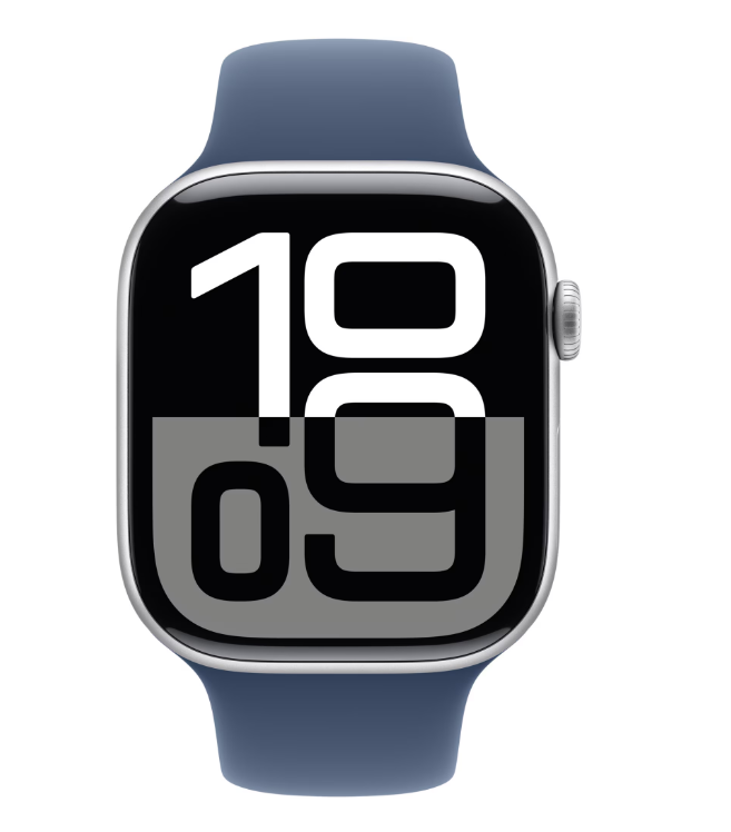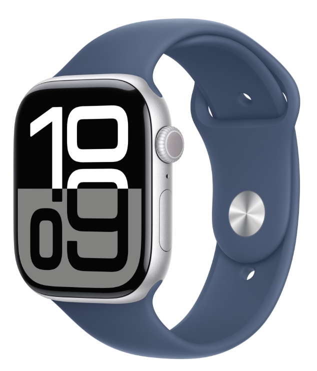 Apple Watch Series 10 GPS + Cellular 46mm Silver Aluminium Case with Denim Sport Band – S/M