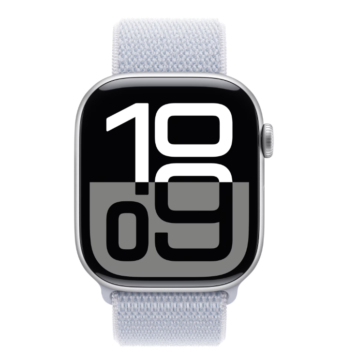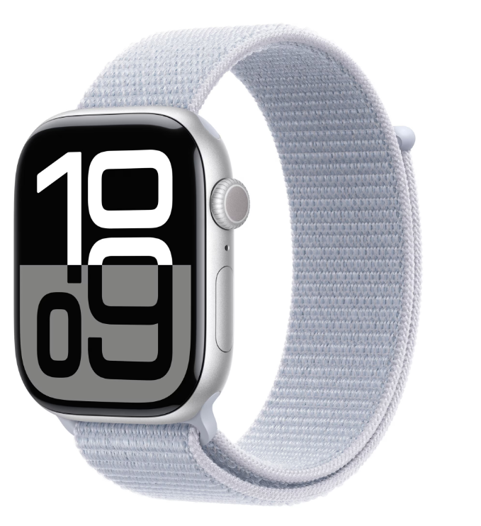 Apple Watch Series 10 GPS + Cellular 46mm Silver Aluminium Case with Blue Cloud Sport Loop