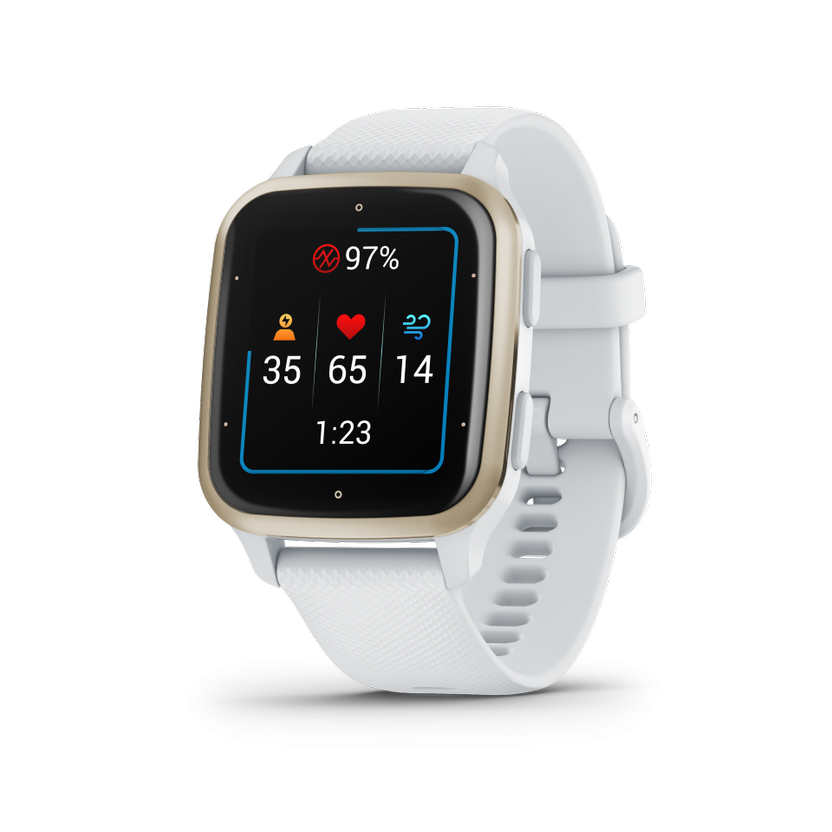 Ceas Smartwatch Garmin Venu SQ2 – Cream Gold Bezel with White Case, Silicone Band 20mm, NFC, GPS, 5 ATM Water Proof