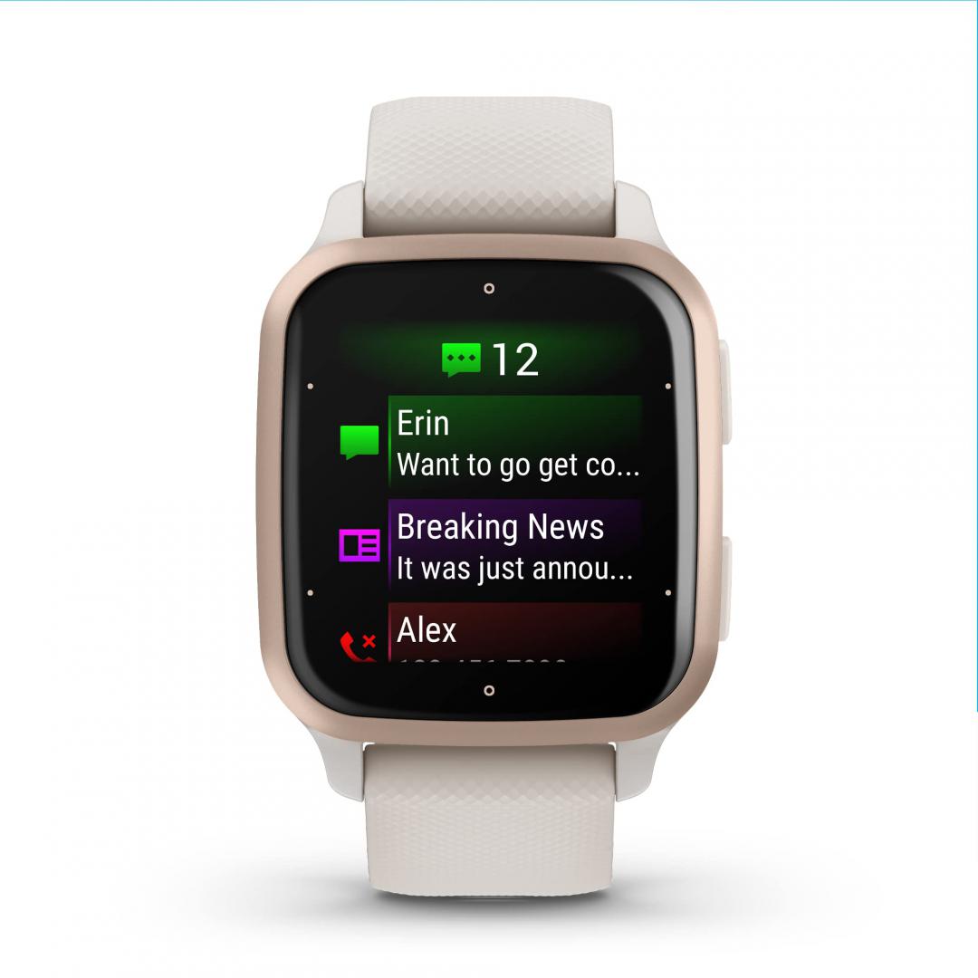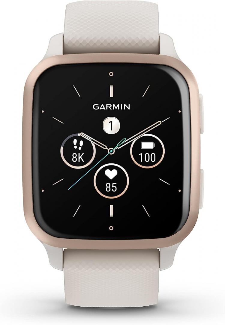 Smartwatch Garmin Venu SQ2 Ivory/Peach – Music Ed., display AMOLED, diagonala display: 1.41″ (35.9 mm), autonomie de pana la 11 zile (12 zile in Battery saver mode), Ivory/Peach