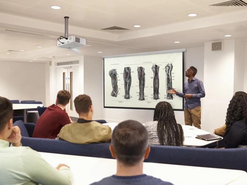 Videoproiector ViewSonic LS610HDH, FHD 1920* 1080, LED 60.000 ore, 5.000 lumeni, 3.000.000:1, zoom optoc 1.2x, dimensiune imagine 300″, distanta proiectare 0.87-10.38 m, 27-32 dB, 2* HDMI, audio in/ out, USB Tip A (Alimentare): 1 (5V/1.5A), RS232, RJ45, difuzor 10W, 5kg, telecomanda cu laser pointer, QSG, culoare alb
